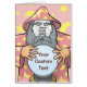 Old wizard with pink cape and crystal magic ball. Use face photo to customise. Custom text.