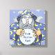 Old wizard with blue cape and crystal magic ball. Use face photo to customise. Custom text.