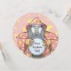 Old wizard with pink cape and crystal magic ball. Use face photo to customise. Custom text.