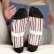 Slightly wobbly stripes in red on almost white. Uneven, as if hand-drawn. Suitable for the office or other serious business activities. At least as long as you keep your shoes on. Underneath, at the foot, there's still some space, where you can add your name or a short quote that brightens your day.