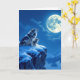 A birthday card with wolves howling at the full moon on a cold winter night standing upon a cliff.