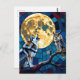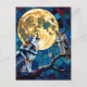 Keep in touch with this postcard. A vibrant colourful ai illustration of a mosaic style wolf, an owl and a full moon in a stained glass vibe.