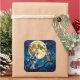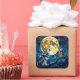 A vibrant colourful ai illustration of a mosaic style wolf, an owl and a full moon in a stained glass vibe. Decorate your notebooks, phone, tablet case or seal an envelope with this cool wildlife art.