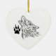 WOLF AND PAW PRINT CERAMIC TREE DECORATION