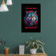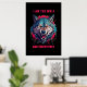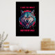 A vibrant illustration of a fierce wolf head with an intense and angry expression, complemented by the bold text "I am the wolf and you my prey."
