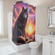 This shower curtain has a wolf design on it.
