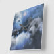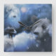 A wildlife clock with the wolf, bear and eagle. A sky with clouds and a moon, this is a Native American animal inspired clock and it has a spiritual feel to it.