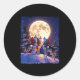 Wolf Christmas Funny 3 Wolf Howling Moon Santa Hat Classic Round Sticker