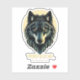 Sticker of a gorgeous tribal wolf face in beige blue with the word Warrior. Fear clouds the mind as a customisable text option