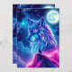 A stunning cosmic-themed birthday invitation featuring a majestic wolf surrounded by glowing stars and galaxy colors. Perfect for kids and teens who love mystical and space-inspired designs.