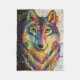 Snuggle up in this vibrant wolf head print fleece blanket