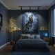 This dramatic digital artwork features a majestic gray wolf howling at a glowing full moon with lightning bolts striking through stormy clouds in the background. Perfect for creating a powerful, mystical atmosphere in your home or man cave with this epic wilderness scene.