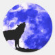Wolf Howling at Moon Blue Night Classic Round Sticker