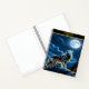 Wolf howls at moon in night sky notebook