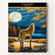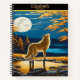Beneath a shining full moon, a majestic wolf stands by a serene lake, vocalising its haunting call. Surrounded by vibrant autumn trees, the scene captures magic and solitude, inviting the viewer into a world of nature’s beauty under the night sky.
