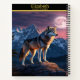 In a serene mountain landscape, a majestic wolf stands proudly atop a rocky outcrop, howling into the night. The full moon casts a magical glow over the snow-capped peaks, creating a captivating atmosphere filled with the spirit of the wild.