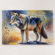 Pretty beautiful grey wolf standing in a clearing in a forest watercolor painting. Perfect gift for nature and art lovers and enthusiasts.