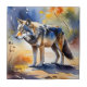 Pretty beautiful grey wolf standing in a clearing in a forest watercolor painting. Perfect gift for nature and art lovers and enthusiasts.