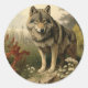 Awesome, vintage picture of a wolf standing in a meadow, is featured on this round sticker. Use this sticker for special mailings, decorating, scrapbooking and more! Great sticker for nature and wolf fans too.