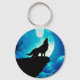 Wolf in silhouette howling to the full moon key ring