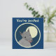 Custom two-sided invitation cards. Front has customisable "You're Invited". Back has invitation information--enter your event title, date, time, location, and a personal message. "Paper cutout" style furry wolf against a full moon, within a bordered circle. Fun animal design.