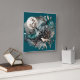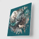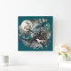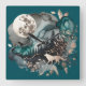 Wolf Landscape & Moon Teal Gold Square Wall Clock