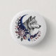 Wolf & Moon Button - Charming Mystical Wolf, Crescent Moon, Flowers