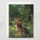Vintage fairytale artwork from the Grimm's story of Little Red Riding Hood. A wolf follows her as walks through the forest carrying her basket.