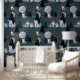 Wolf Pack Woodland Night Sky Moon Baby Nursery Wallpaper