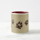 A mug with wolf paw prints going around it. Prints in dark brown on a beige coloured background. Show your support of these beautiful and elusive night time canine singers.