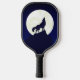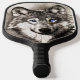 Pickleball paddle with image of a wolf with blue eyes.