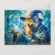 Wolf-transforming mage in fantasy oil style holiday postcard