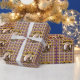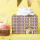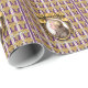 The original artwork by ZoeSPEAK on this Wrapping Paper features a portrait of the classical music composer Wolfgang Amadeus Mozart. The portrait is a profile set in an ornate oval golden frame. The frame hangs on a purple wallpaper background with golden bunches of grapes in rows, and vertical white and lavender stripes. Under the picture there is white text which reads Wolfgang Amadeus Mozart.