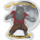 Night time is the right time to wolf down some candy. Fun Halloween Sticker with a werewolf standing in front of the moon.