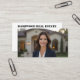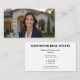 A real estate agent stands in front of a home she just sold on the front of this business card for a realtor. The back is plain white, with space for your business information. Easily adaptable to a variety of other businessness, such as mortgage companies, property management, development, building, airbnb, vacation rentals, and more.