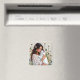 Woman and White Cat and Dandelions Magnet