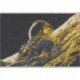 A digital illustration of a woman astronaut in a duotone art style of blue and gold.