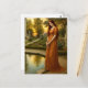 Woman By Garden Pond At Sunset Postcard