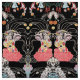 WOMAN,CENTAUR FLORAL Red Black White Klimt Pattern Fabric