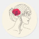 Woman Continuous Line with Red Rose On Hair Classic Round Sticker