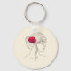 Woman Continuous Line with Red Rose On Hair Key Ring