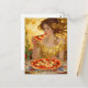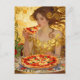 Woman Eating Pizza Faux Klimt Art Postcard