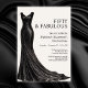 Celebrate a milestone in style with this luxurious 50th birthday invitation featuring a stunning black evening gown on a ivory background, paired with the bold statement “Fifty & Fabulous.” The back design completes the look with black high heels and the playful phrase “Let’s Party,” making this invitation perfect for a chic, glamorous celebration.