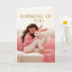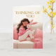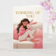Woman Hugging Bunny on Couch Thinking of You Card