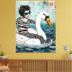 Woman in a Zebra Striped Outfit Floating on a Swan Canvas Print