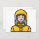woman in raincoat postcard
