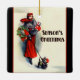 at christmass as a hanging decration for the chritmass tree.. its white porcline or cramic but very well made with added photo on one side.. also has a lovley red bag to keep it in.. execlent printed text in bold and black stands out well aganst the blue background of the photo.