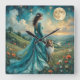 Woman in Turquoise Dress and Sable Rough Collie Square Wall Clock