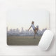 Woman kneeing soccer ball in urban park mouse mat