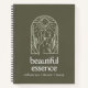 This boho-inspired custom notebook features an elegant logo of a woman’s silhouette adorned with delicate leaves and a crescent moon, framed gracefully within an arch. Designed in a warm organic colour palette of sage green it brings a touch of natural beauty to your organisation. The front cover includes two customisable lines of text. Perfect for wellness businesses such as spas, detox centre, skincare boutiques, holistic health and reiki healing practice, aromatherapy experts, naturopathic clinic and lifestyle coaches. It’s ideal for organising client records, managing taxes, tracking appointments, storing contracts, and cataloguing product information, ensuring your workspace remains professional and serene.